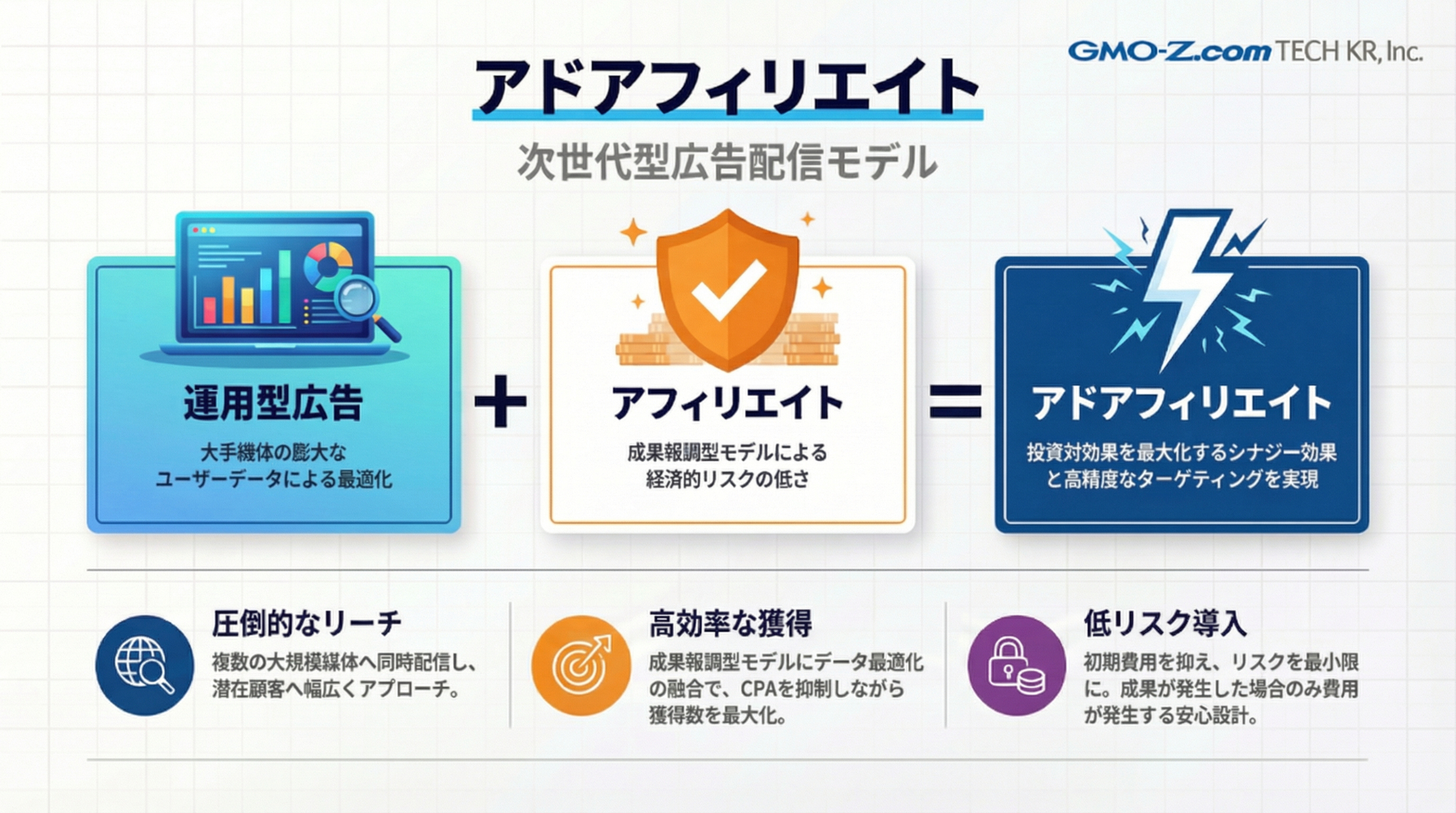 GMO-Z.com TECH KR, Inc.(本社:韓国ソウル、以下GMO-Z.com TECH KR)は、2026年3月18日(水)、ノンインセンティブCPI広告の新サービスとして、SNS運用型広告・DSP・アドネットワークを融合させた「アドアフィリエイト」の提供を開始します。
